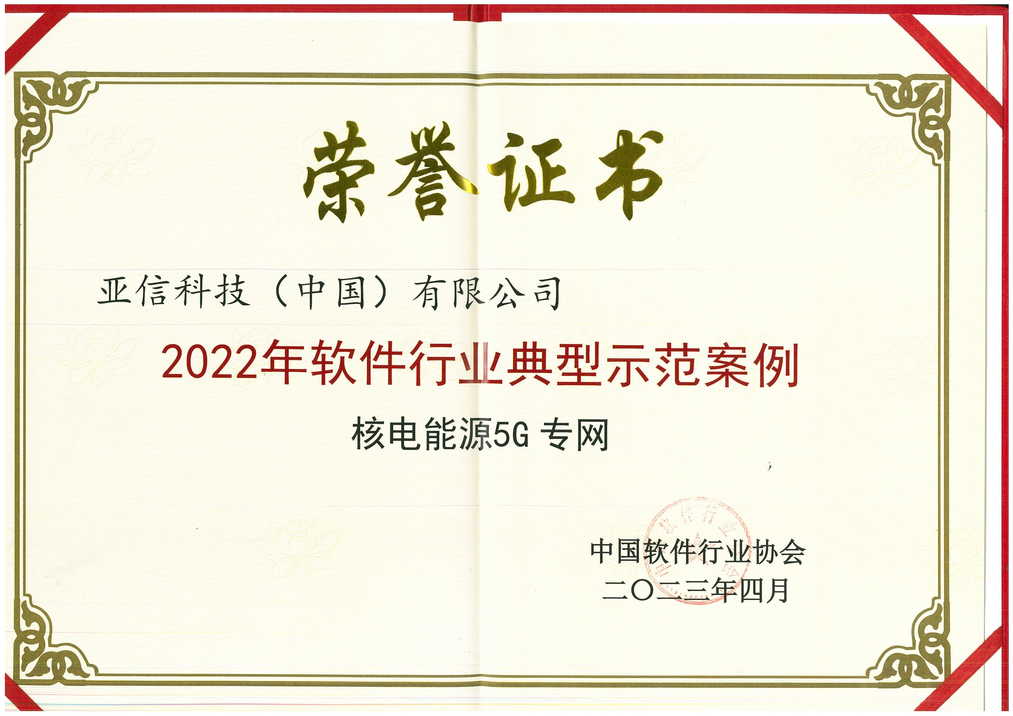 2023年4月 304am永利集团核电能源5G专网荣获“2022年软件行业典型示范案例”
