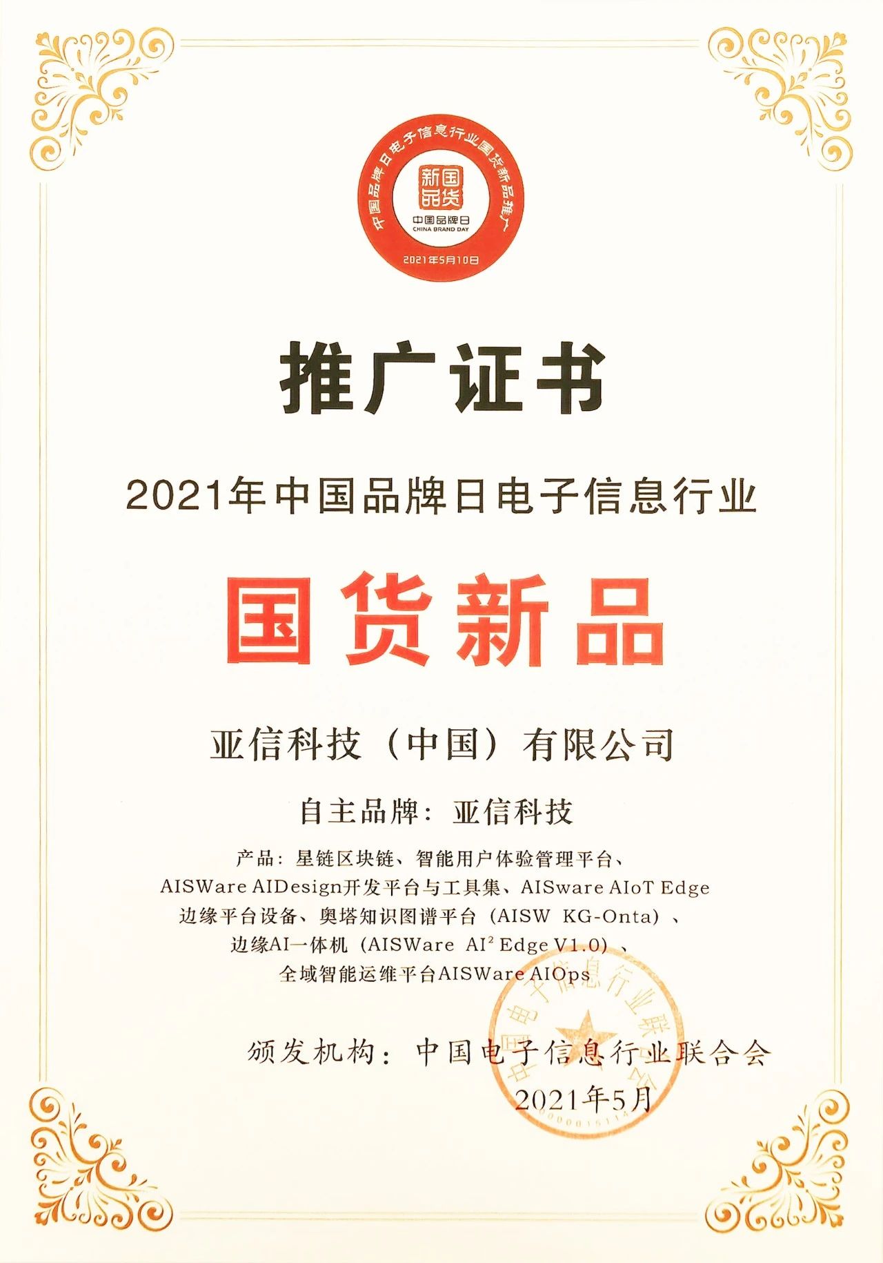2021年5月 304am永利集团7款产品入选《2021年中国品牌日电子信息行业国货新品推广目录》