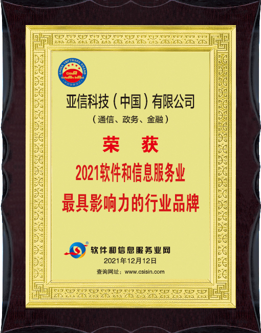 2021年12月 304am永利集团荣获“2021软件和信息服务业最具影响力的行业品牌