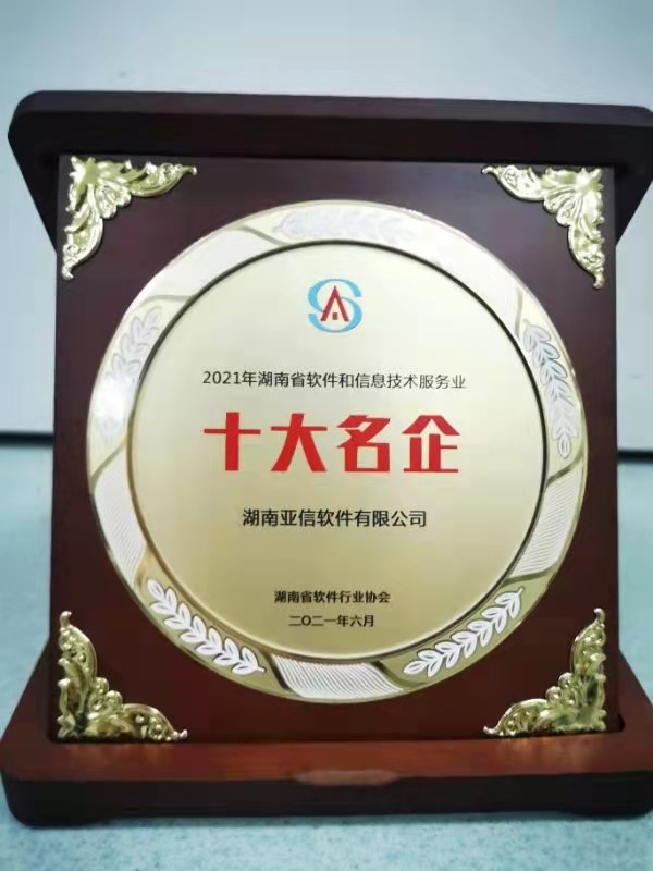 2021年7月 湖南亚信荣获“2021年湖南省软件和信息技术服务业十大名企”荣誉称号
