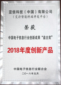 2018年6月亚信艾扑智能终端开发平台V2.0荣获“2018年度优秀软件产品奖项”