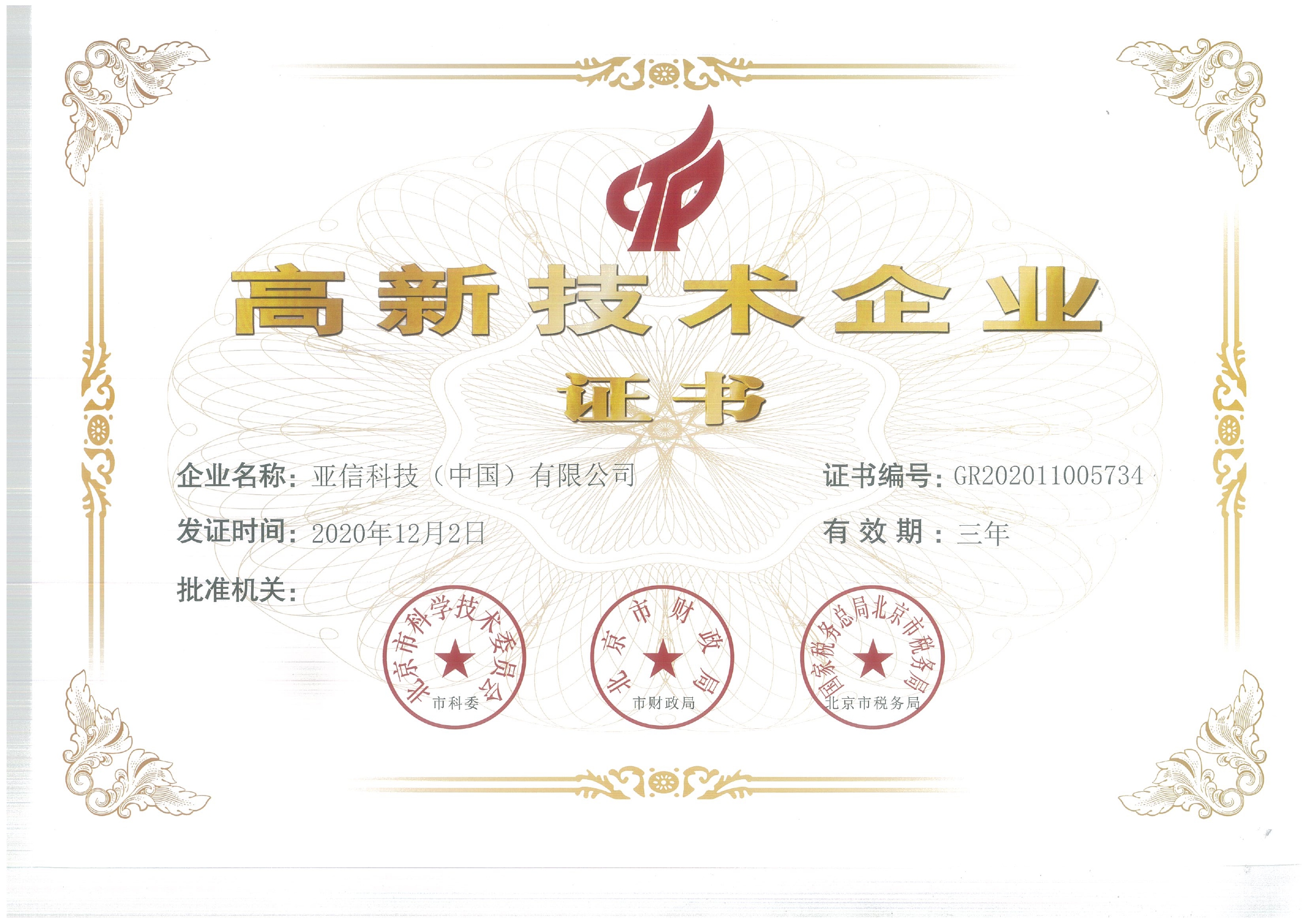 2021年2月 304am永利集团荣获“中关村高新技术企业”
